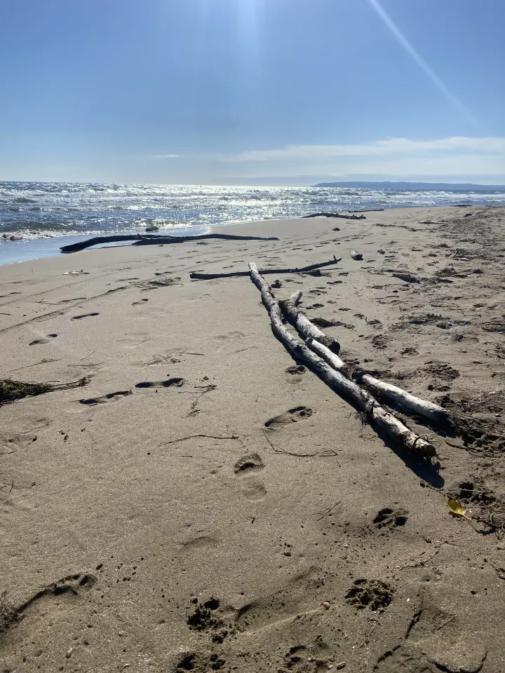 Returned to beach after stormy conditions to find the branches once more scattered and displaced